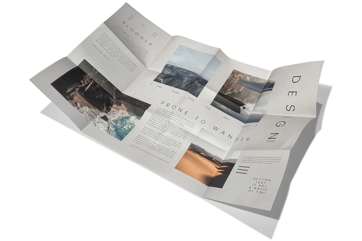 Puoi stampare pieghevoli con piega a fisarmonica incrociata con formato personalizzato fino al formato 50x70 cm
